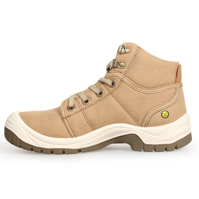 尺码:38 颜色:卡其色 鞋帮款式:中帮 鞋扣类型:O型扣 保护足趾:是 防刺穿:是 绝缘:18KV 防滑:SRC 高级帆布帮面 优质棉质透气内里 鞋底材质:双密度PU注塑鞋底 包头材质:超轻纳米碳 凯芙拉军用防弹材料 适用于电业、电站、邮电、企业电工等行业的作 业保护 保护脚趾|防刺穿|绝缘|防滑 EN ISO20345:2011