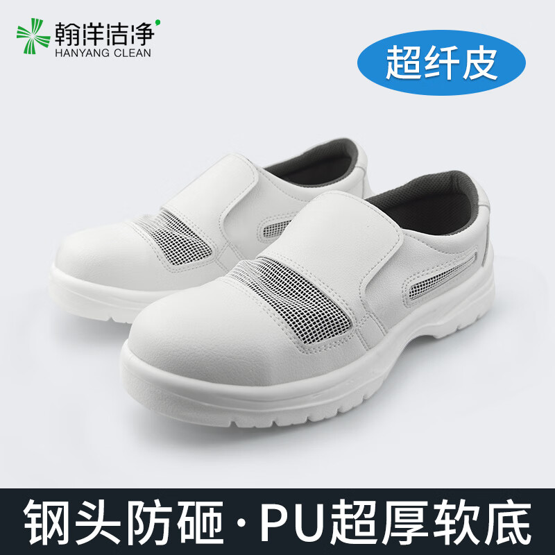 翰洋洁净 防砸防静电鞋面网面透气白色安全鞋