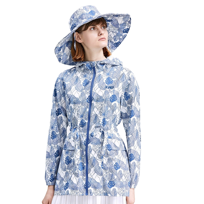 TFO 633085 中长款印花防晒皮肤风衣女款陶蓝