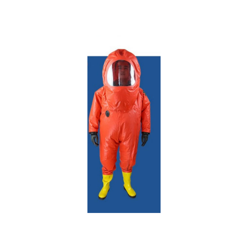 由多层特制的防化聚合物覆合而成,达到优异的化学防护性能及优异物理面料性能,配合内置空气呼吸器使用可提供Level A(A级)防护。针对剧毒、腐蚀性气体、液体、固体提供高效的防护