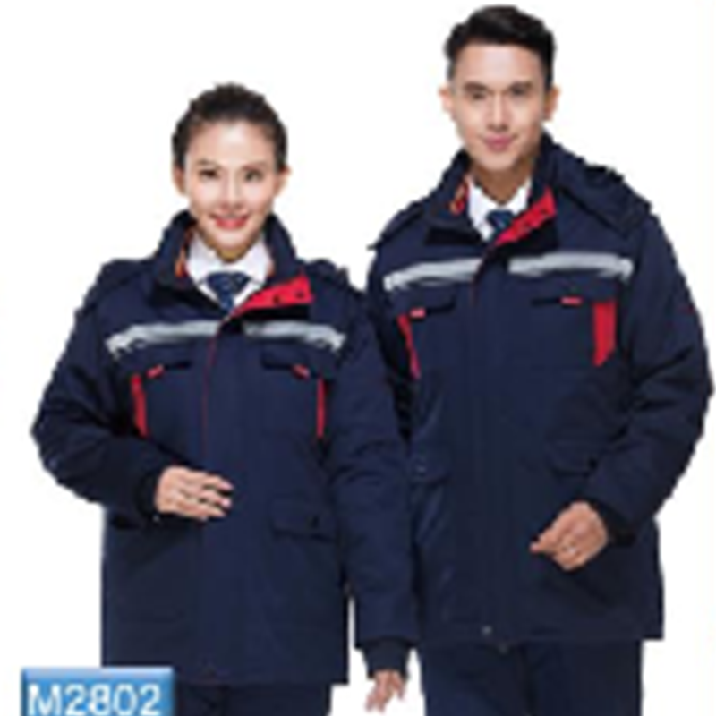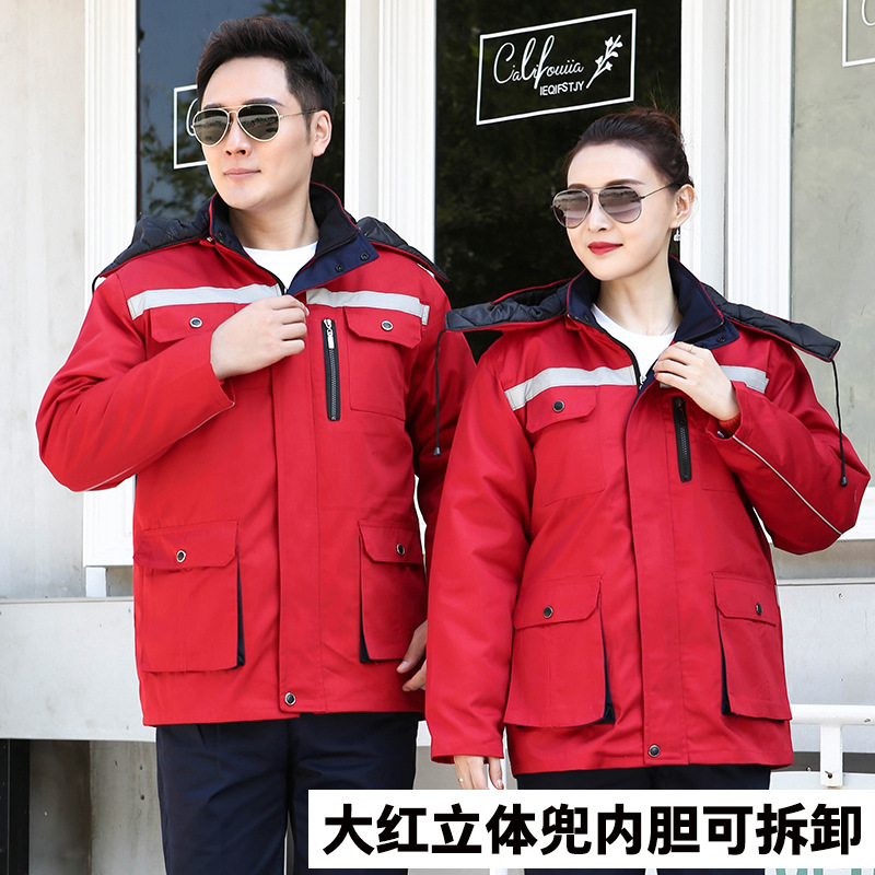 君御 JY-M102秋冬涤棉反光条加厚棉服工作服大红拼藏青色