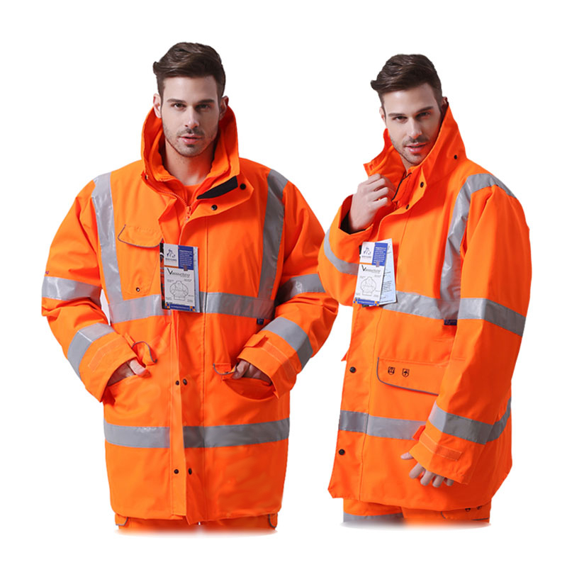 款式:分体 EN 343 防雨 颜色:橘红色 EN ISO 20471:2013 双层袖口 警示反光:是