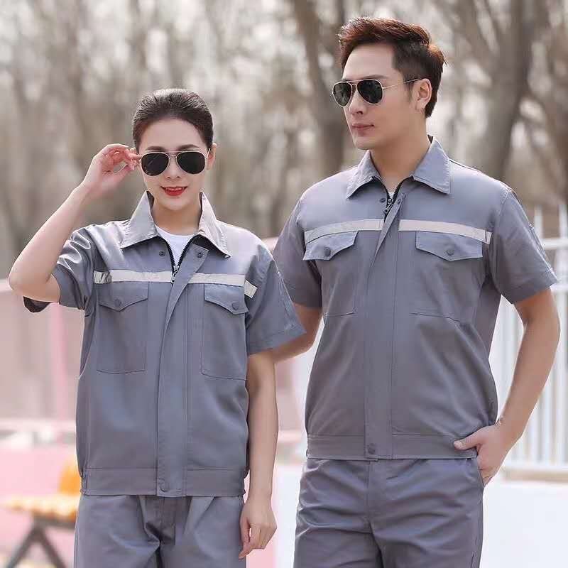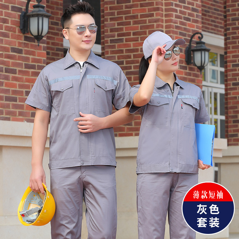 君御JY-纯棉S703夏季全工艺纯棉薄款短袖工作服套装灰色