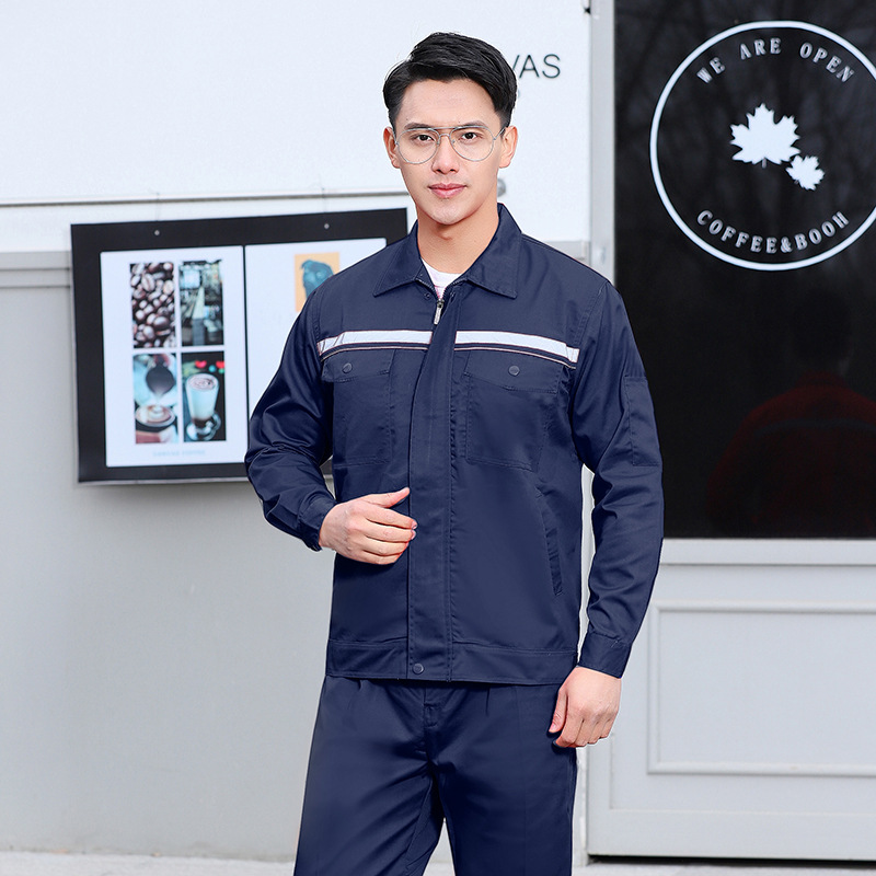 君御JY-SL101夏季薄款全工艺涤棉长袖工作服套装前后反光藏蓝色