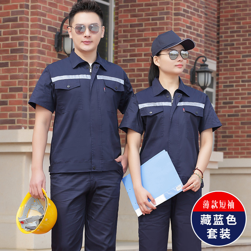 君御JY-纯棉S701夏季全工艺全棉薄款短袖工作服套装藏蓝色