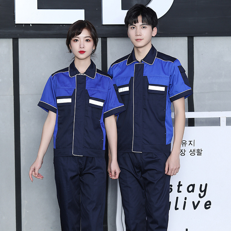 君御JY-S1101夏季全工艺涤棉薄款拼接短袖工作服套装蓝色