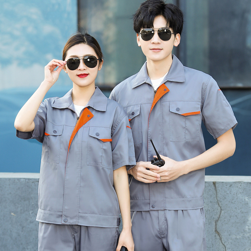 君御JY-S803夏季全工艺涤棉薄款短袖工作服套装灰色