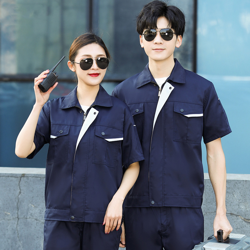 君御JY-S701夏季全工艺涤棉薄款耐磨短袖工作服套装藏蓝色