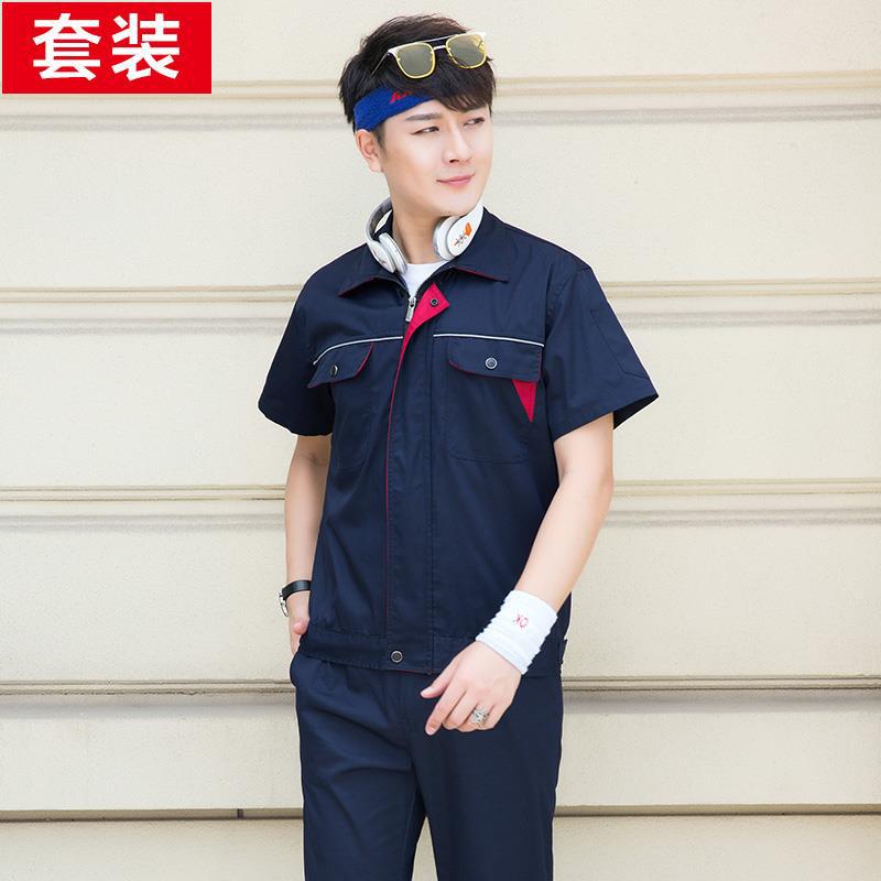 君御JY-S205夏季全工艺涤棉拼色短袖工作服套装藏青大红色