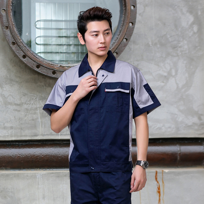 君御JY-S204夏季全工艺涤棉拼色短袖工作服套装藏青浅灰色