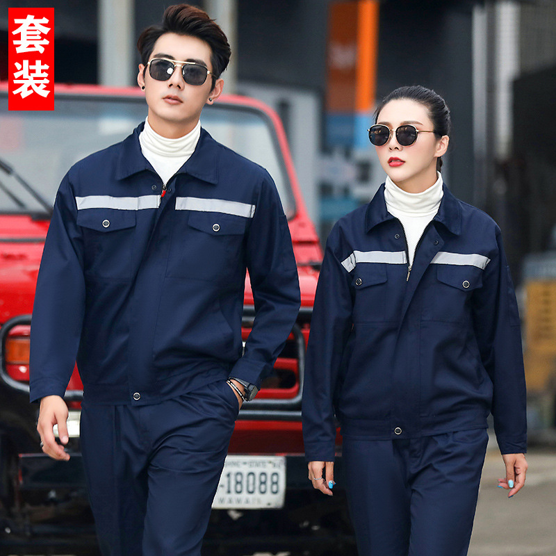 君御JY-W8201春秋全工艺涤棉耐磨加厚工作服套装前后反光条藏蓝色