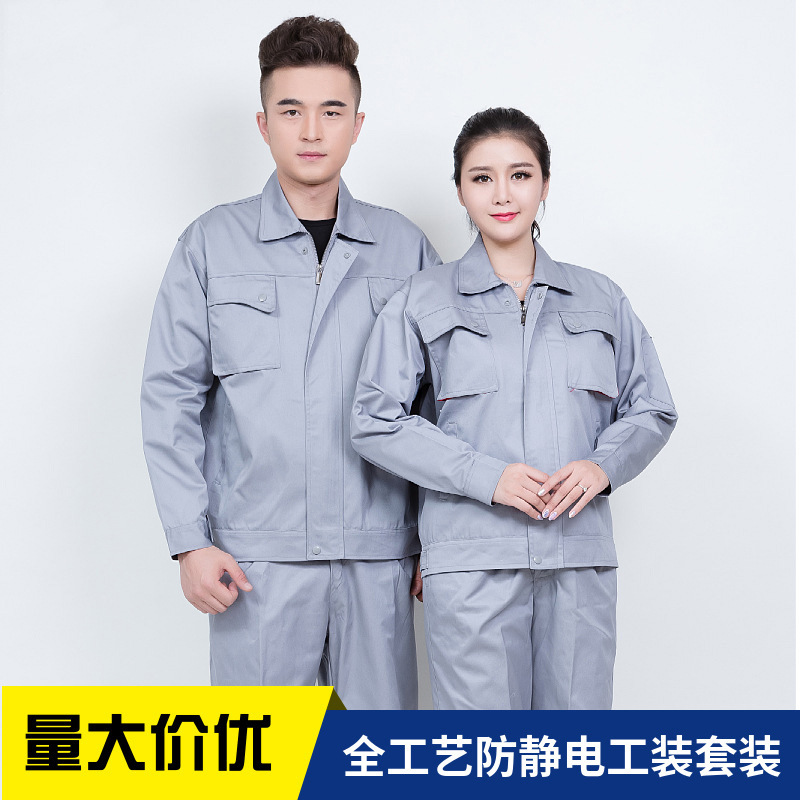 君御JY-防静电W703春秋全工艺涤棉防静电工作服套装灰色