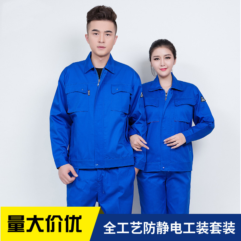 君御JY-纯棉W2003春秋全工艺全棉棉加厚工作服套装艳兰色