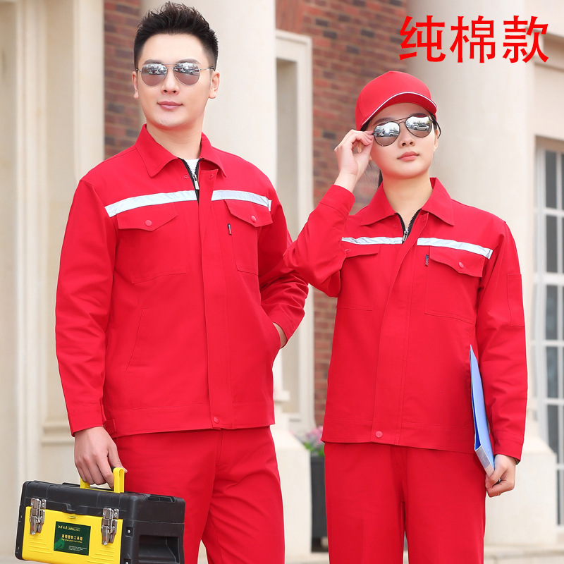 君御JY-纯棉W2004春秋全工艺全棉棉加厚工作服套装大红色