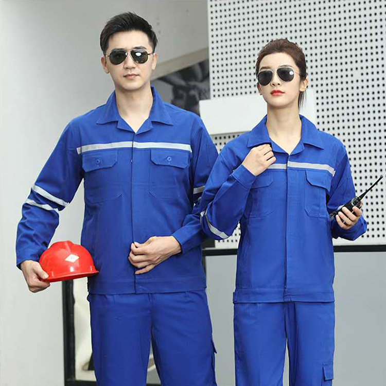 君御JY-W8202春秋全工艺涤棉耐磨加厚工作服套装前后反光条蓝色