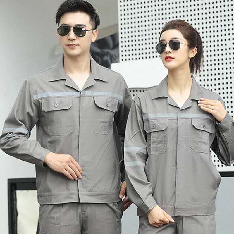 君御JY-纯棉W3702春秋全棉加厚反光条工作服-灰色