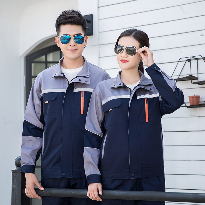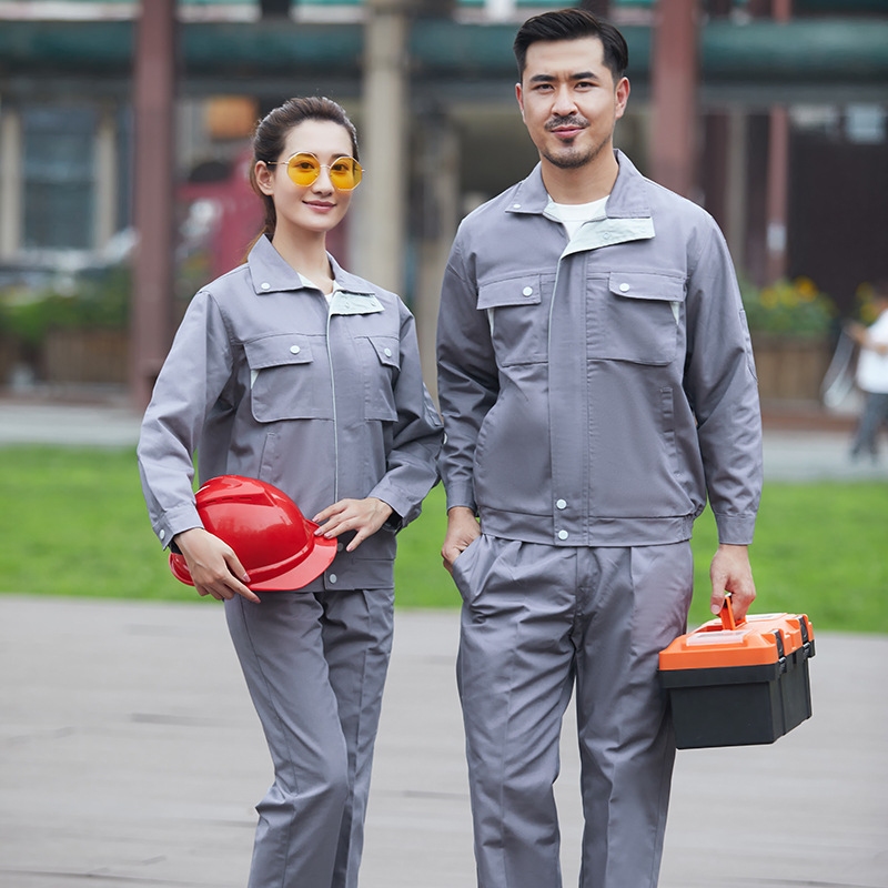 君御JY-W1807春秋纯色反光条涤棉工作服中灰色