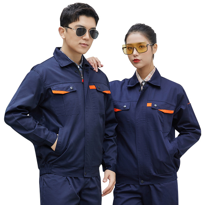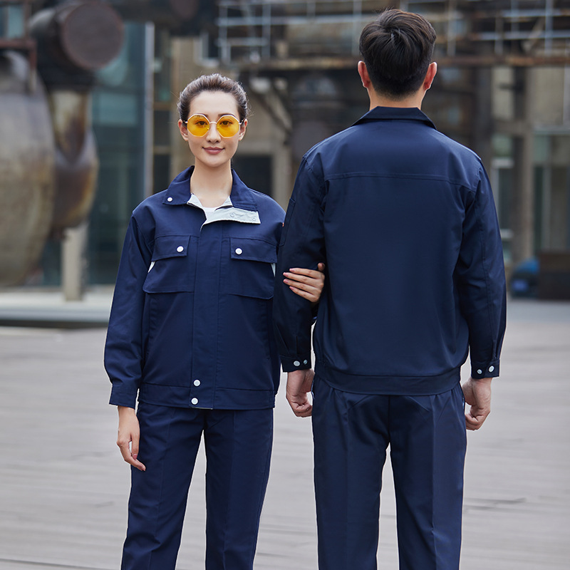 君御JY-W905春秋全工艺涤棉厚珠帆拼色耐磨工作服套装藏蓝色