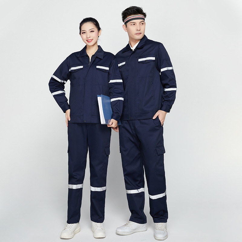 君御JY-W701全工艺春秋全棉加厚工作服套装前后多反光条藏兰色