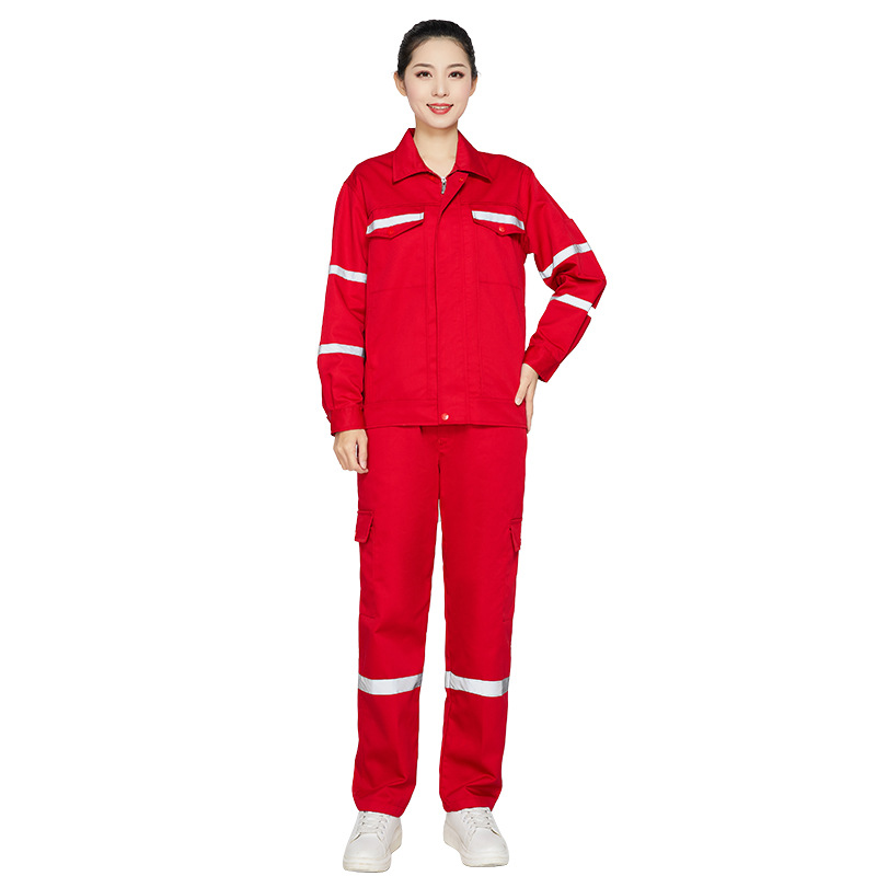 君御JY-W9206全工艺春秋涤棉加厚工作服套装前后多反光条大红色