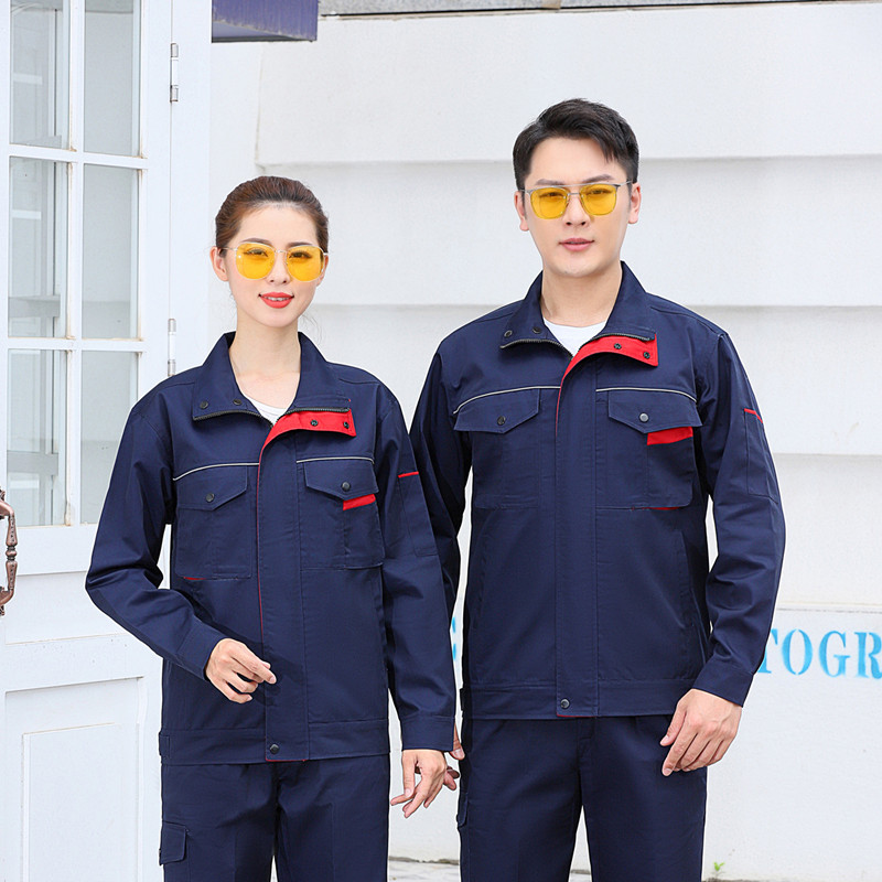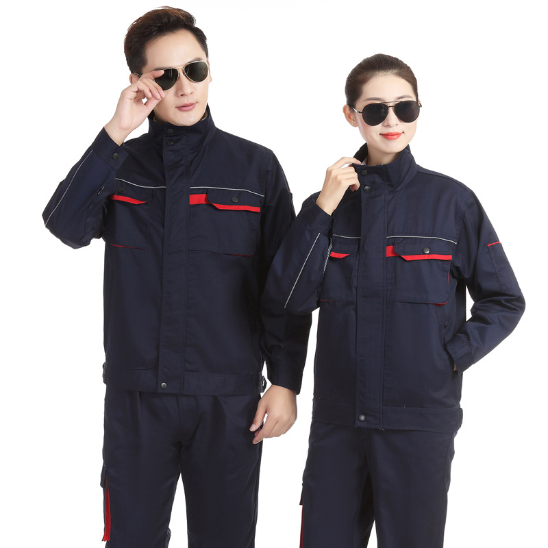 君御JY-W901春秋全工艺涤棉厚珠帆拼色耐磨工作服套装藏蓝色