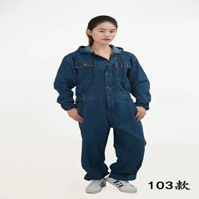 君御JY-N105秋冬纯棉加厚连体牛仔带帽工作服