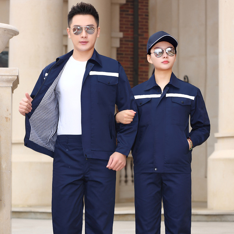 君御JY-W6001春秋涤棉双层带里子加厚工作服前后反光条藏青色