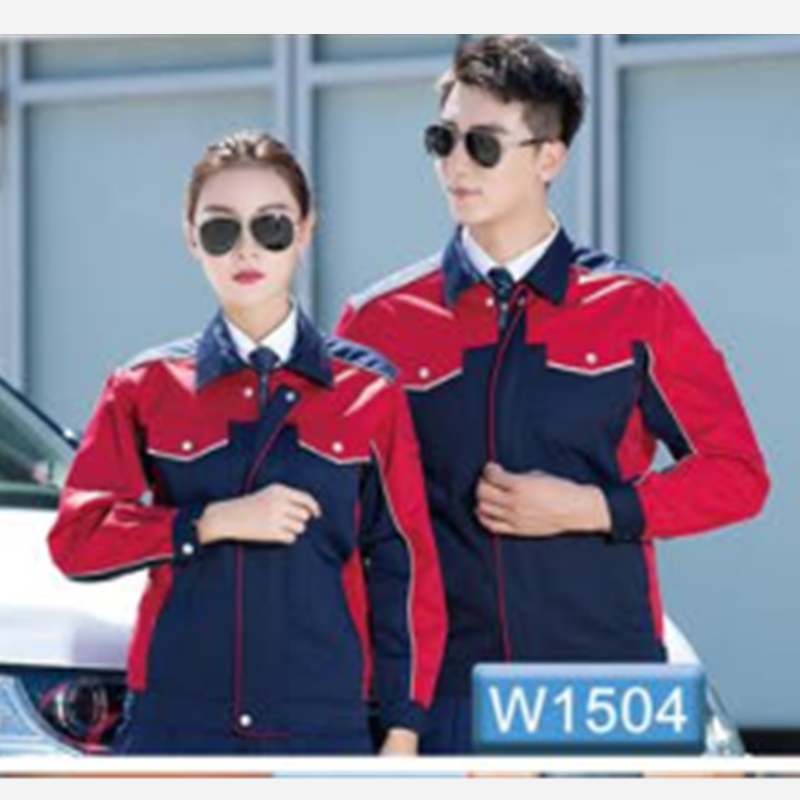 君御 JY-W1504春秋拼色加厚工作服大红拼藏青色