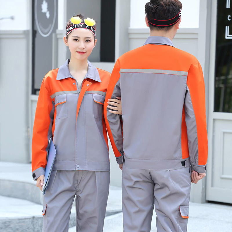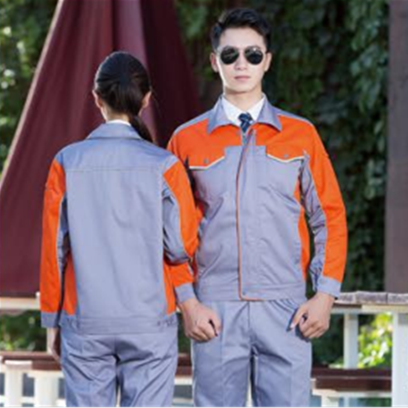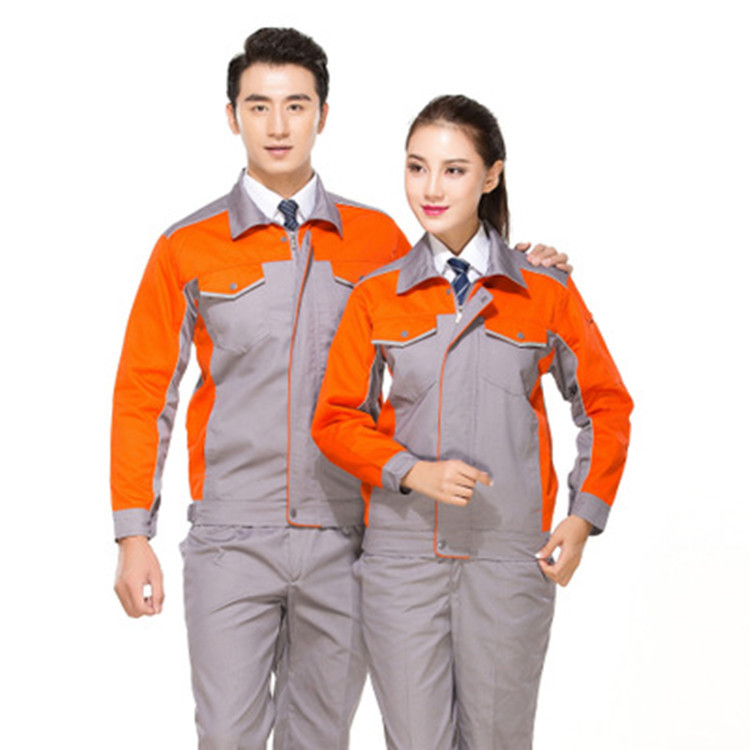 君御 JY-W1505春秋拼色加厚工作服橘红拼灰色