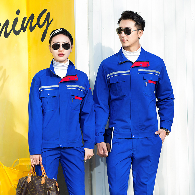君御 JY-W1506春秋拼色加厚工作服艳兰拼灰色