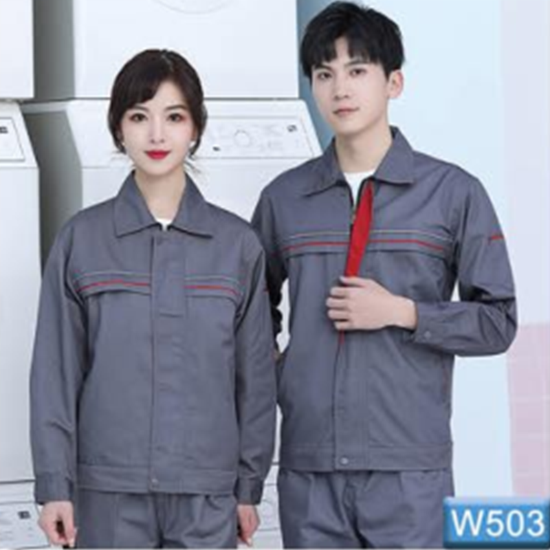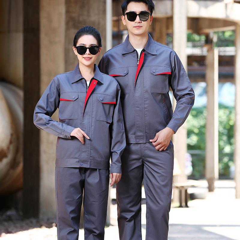 君御 JY-W803春秋涤棉纯色工作服灰色拼红色