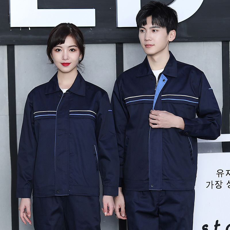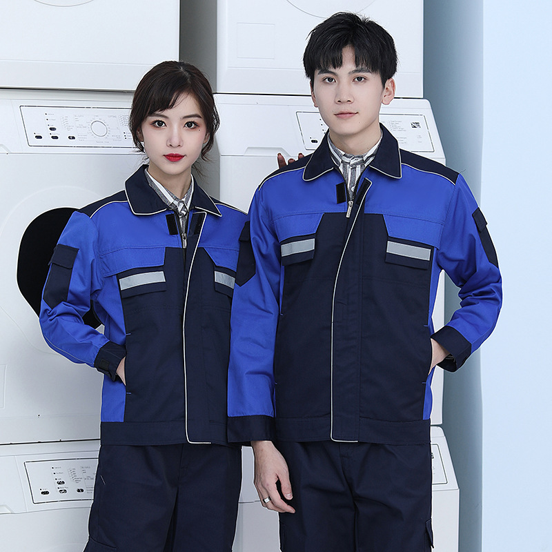 君御 JY-W201春秋涤棉拼色工作服艳兰拼藏青