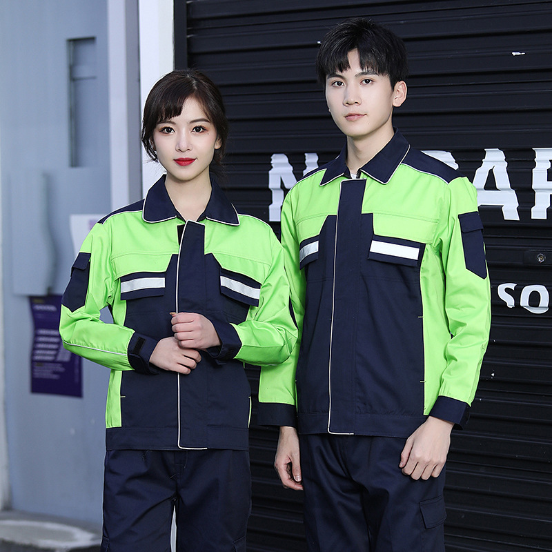 君御 JY-W202春秋涤棉拼色工作服翠绿拼藏青