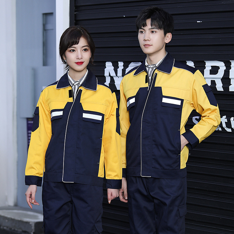 君御 JY-W203春秋涤棉拼色工作服黄色拼藏青