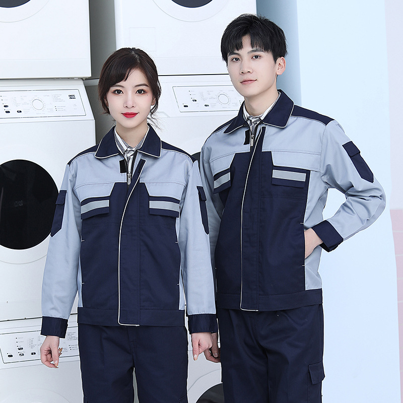 君御 JY-W204春秋涤棉拼色工作服灰色拼藏青