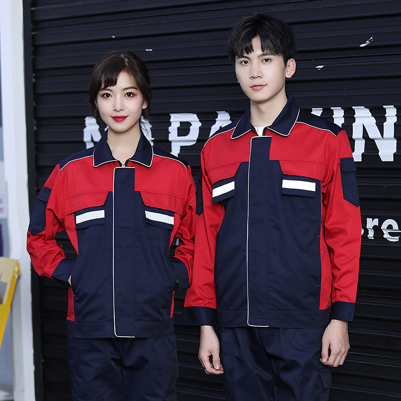 君御 JY-W205春秋涤棉拼色工作服大红拼藏青