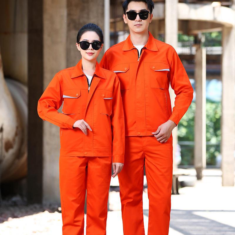 君御 JY-W809春秋涤棉纯色工作服橘红拼白色