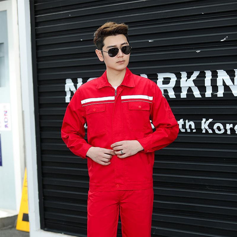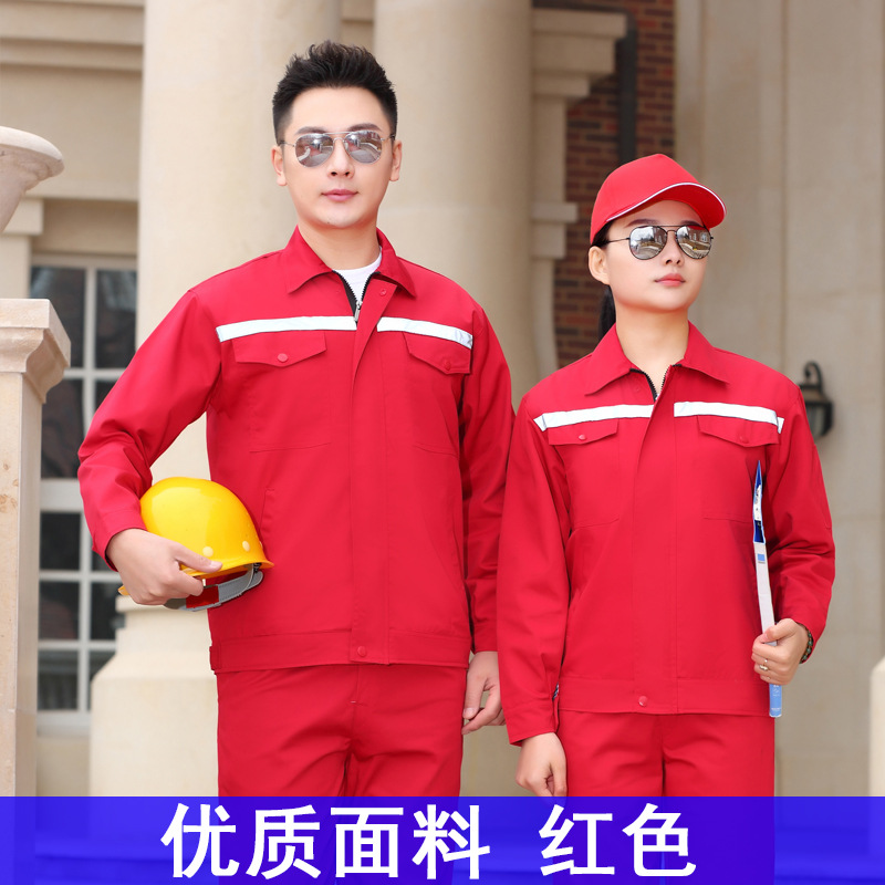 君御JY-纯棉W3703春秋全棉加厚反光条工作服-大红色