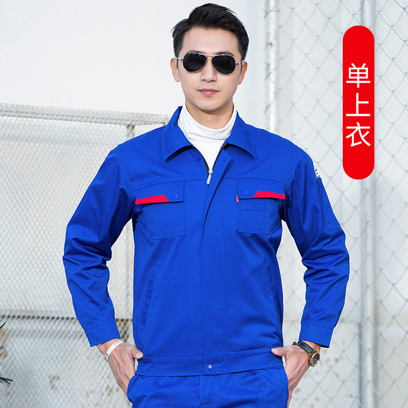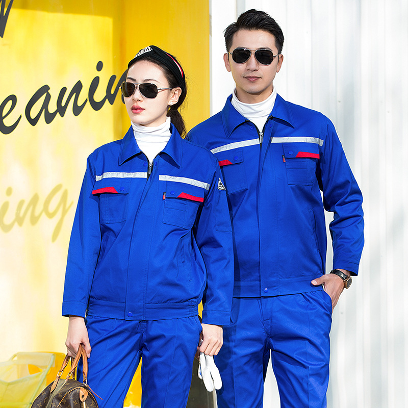 君御JY-W1802春秋纯色反光条涤棉工作服艳兰色