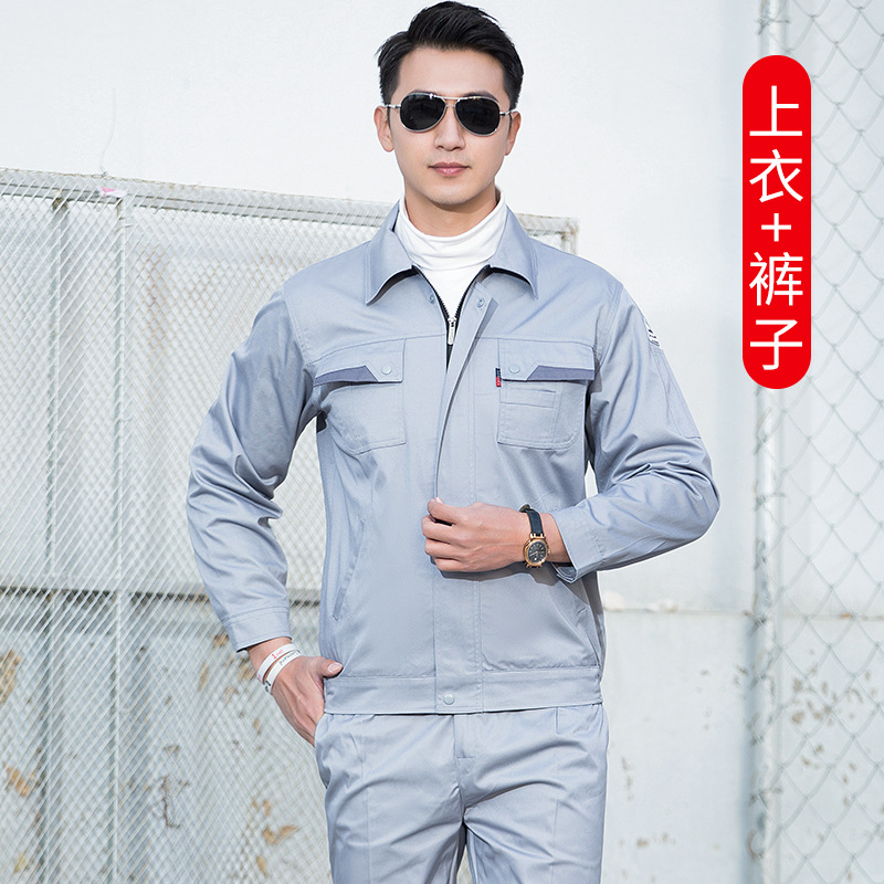 君御JY-W1803春秋纯色反光条涤棉工作服中灰色