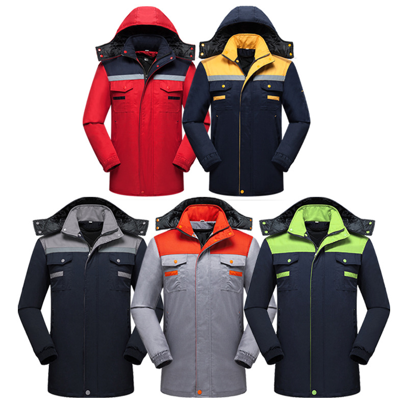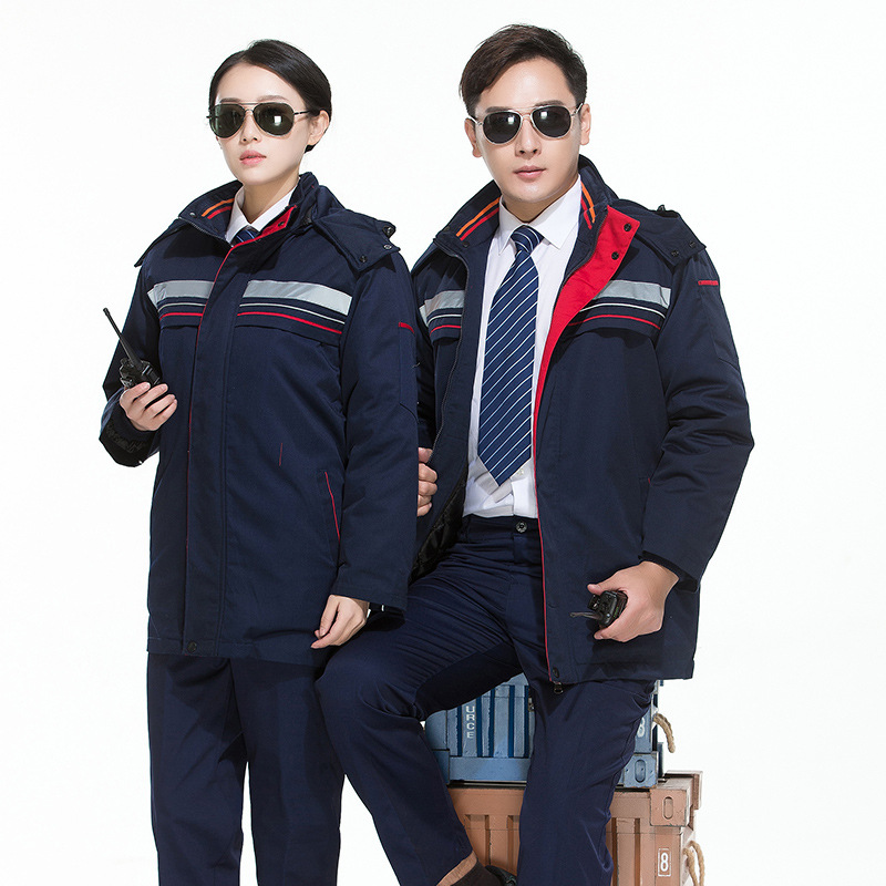君御 JY-M106秋冬涤棉反光条加厚棉服工作服藏青拼红领