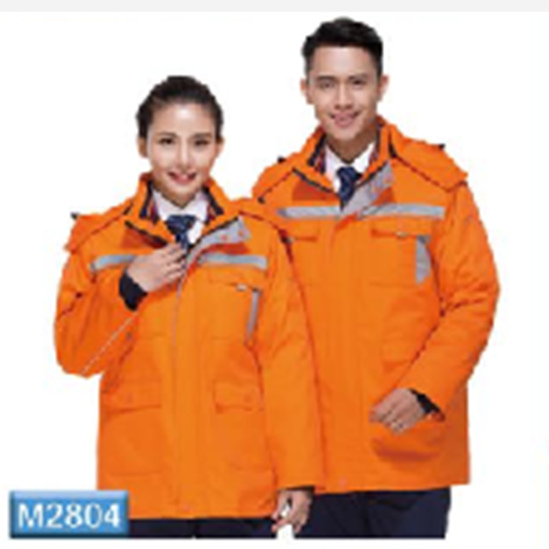 君御 JY-M2804秋冬加厚纯棉反光条棉服工作服橘红色