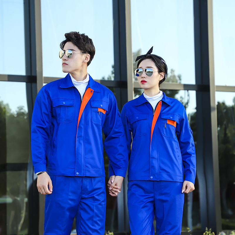 君御JY-纯棉W301春秋全棉加厚长袖工作服-藏青拼红色