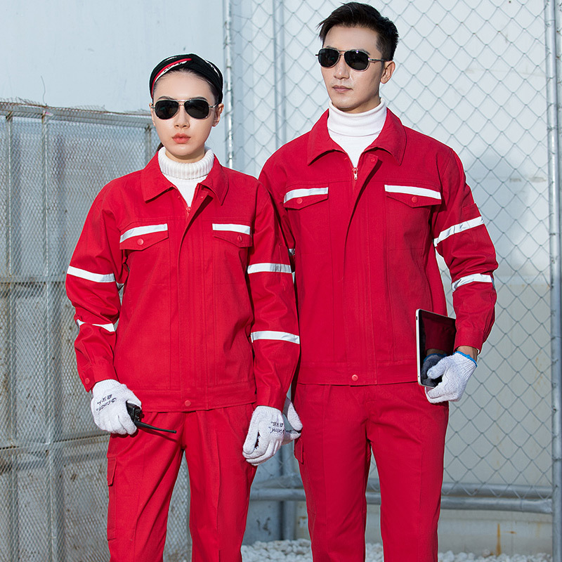 君御JY-纯棉W703春秋加厚纯棉反光条工作服-大红色
