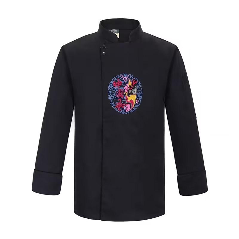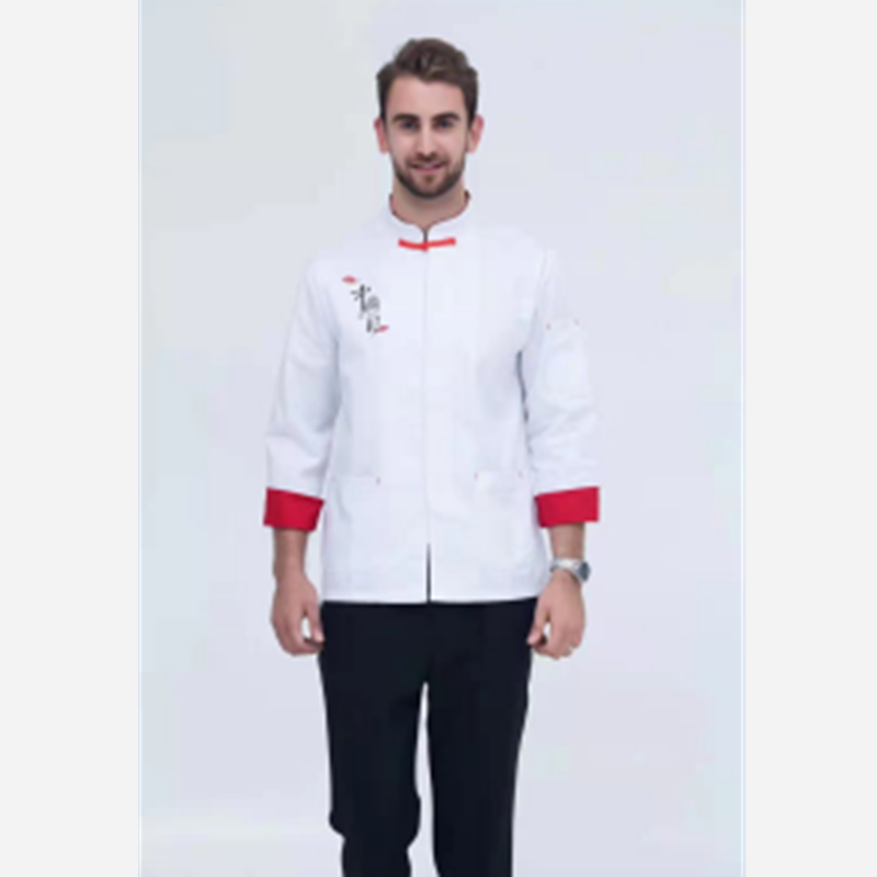君御 JY-S104中国风双排扣厨师服白色红袖