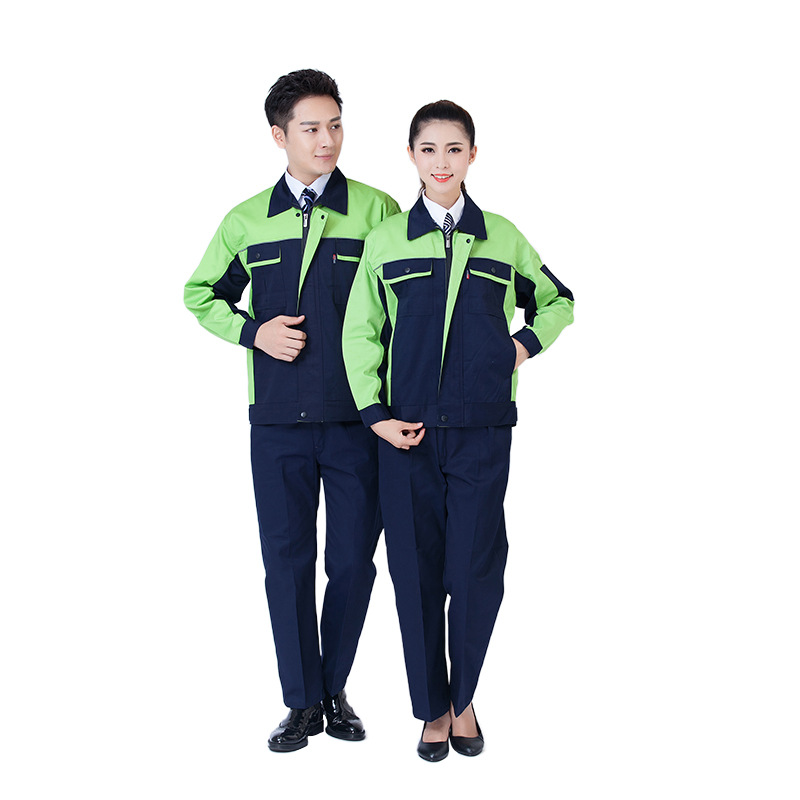 君御JY-W1104春秋拼色涤棉工作服-果绿+藏青