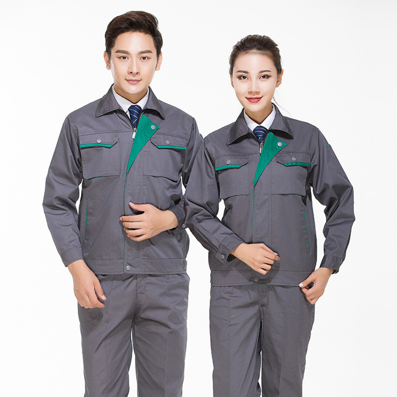 君御JY-W3702春秋涤棉加厚工作服-中灰+绿