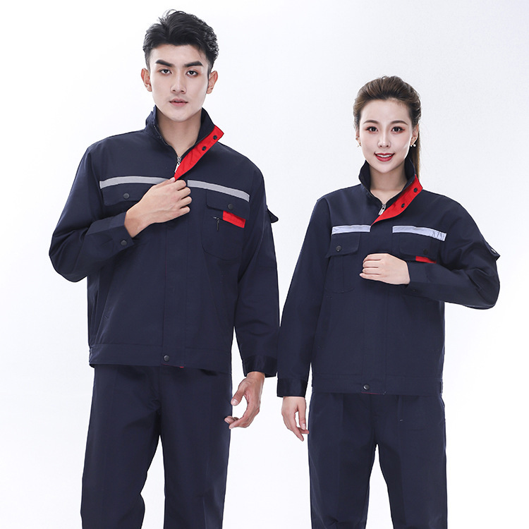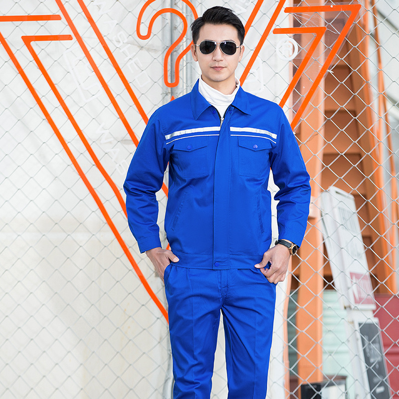 君御JY-W1801春秋纯色反光条涤棉工作服-藏青色