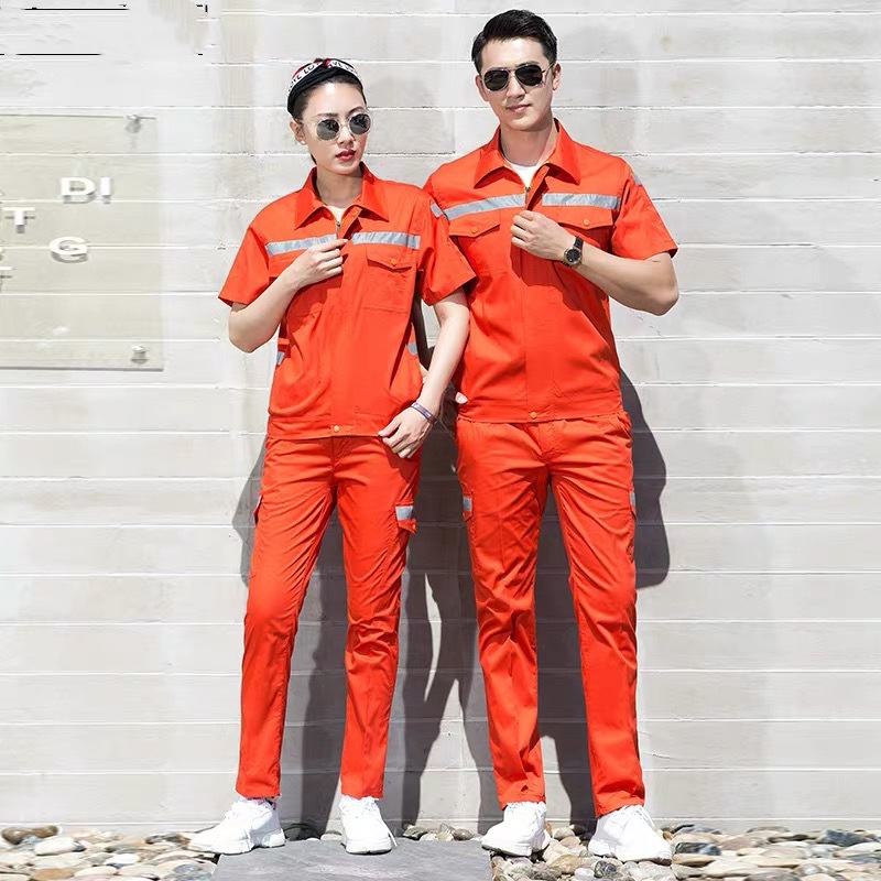 君御JY-S1902全工艺涤棉细斜纹薄款环卫短袖工作服套装橘红色