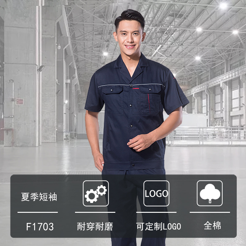 君御JY-纯棉S1203夏季全工艺全棉薄款短袖工作服套装藏蓝色